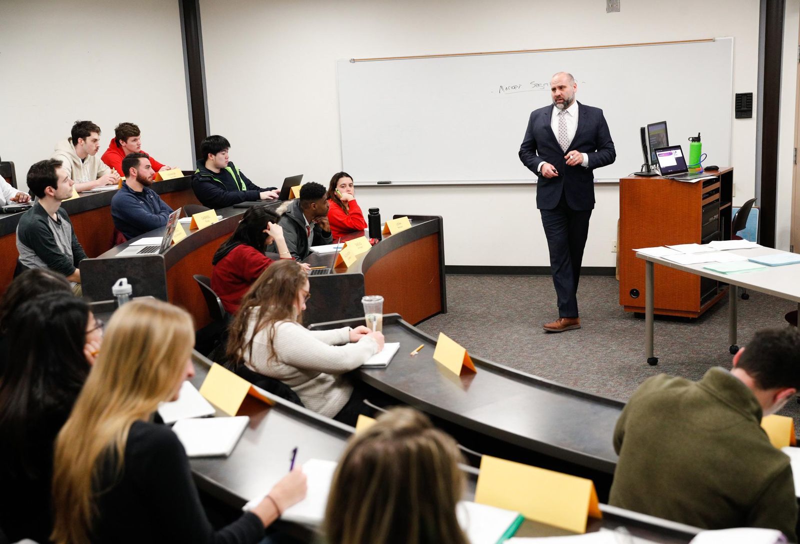 Skidmore’s dual-degree programs include engineering, nursing, and physical and occupational therapy, and affiliated master’s programs in medicine, teaching, and business. Annually, 20% of the student body engages in collaborative research projects with a faculty mentor, many of them funded by the College. During their Skidmore career, 85% of students complete an internship, and 75% complete more than one. Pre-professional advising is available for various fields, including engineering, health sciences, and law. Every Skidmore class is taught by a faculty member, and 80% of faculty hold a doctorate or the highest degree in their fields. Students have direct access to an array of peer mentors, career coaches, engaged alumni, and health and wellness counselors